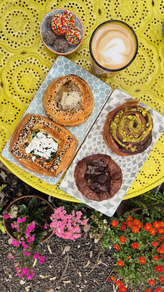 ירין רק בת 21, אבל היא אופה כבר מגיל 15 ומגישה בעגלה שלה תפריט משתנה בכל שבוע. את האהבה שלה לבצק מרגישים בכל ביס.  יש כאן סנדוויצ'ים של גבינה או סלמון, קרואסונים, עוגיות ועוגות מעולות. אני טעמתי קוראסון של קרם פטיסייר וקורנפלקס וזה היה מעולה! אבל יש מאפה אחד שמבחינתי שווה להגיע אליו מרחוק? כתבתי עליו בטיפ, אז קראו עד הסוף 🙂